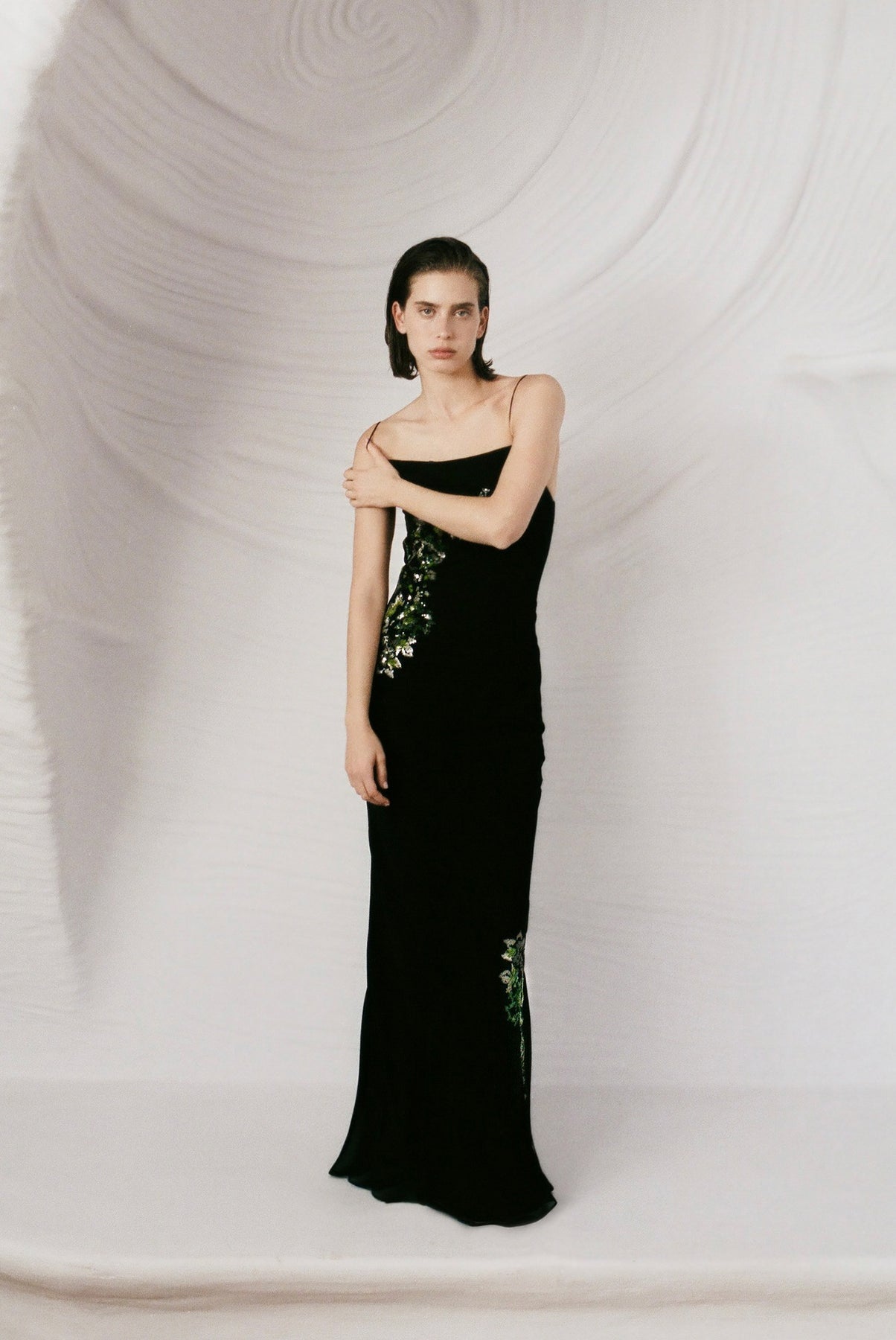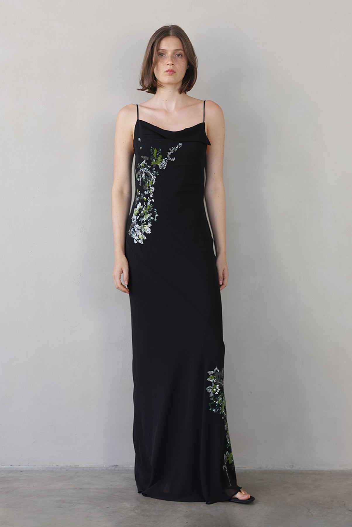 • Evening sequined chiffon maxi dress by Sabina Musayev.