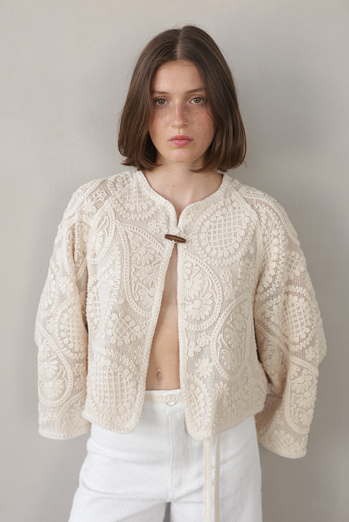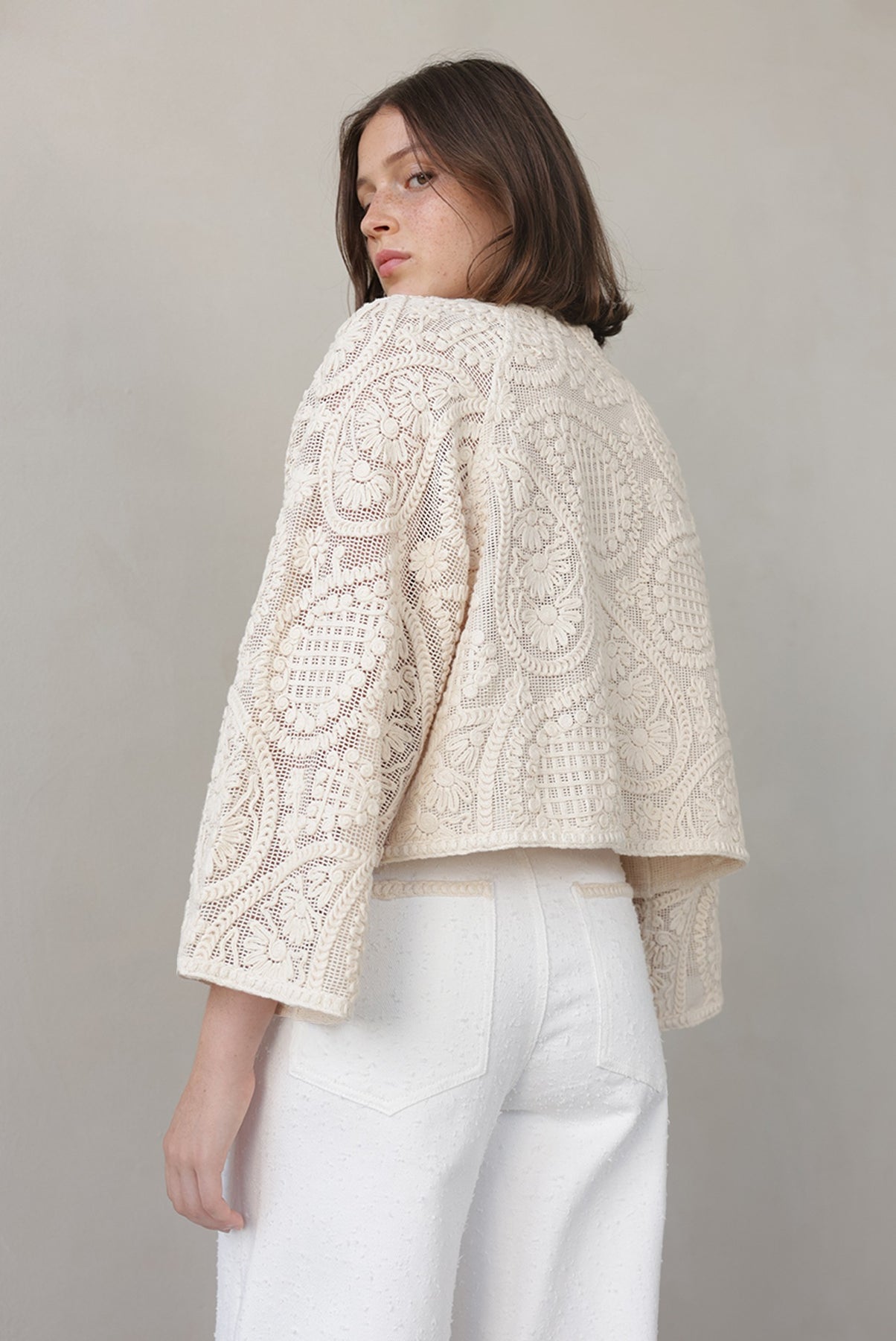 • Casual paisley crochet crop jacket by Sabina Musayev.