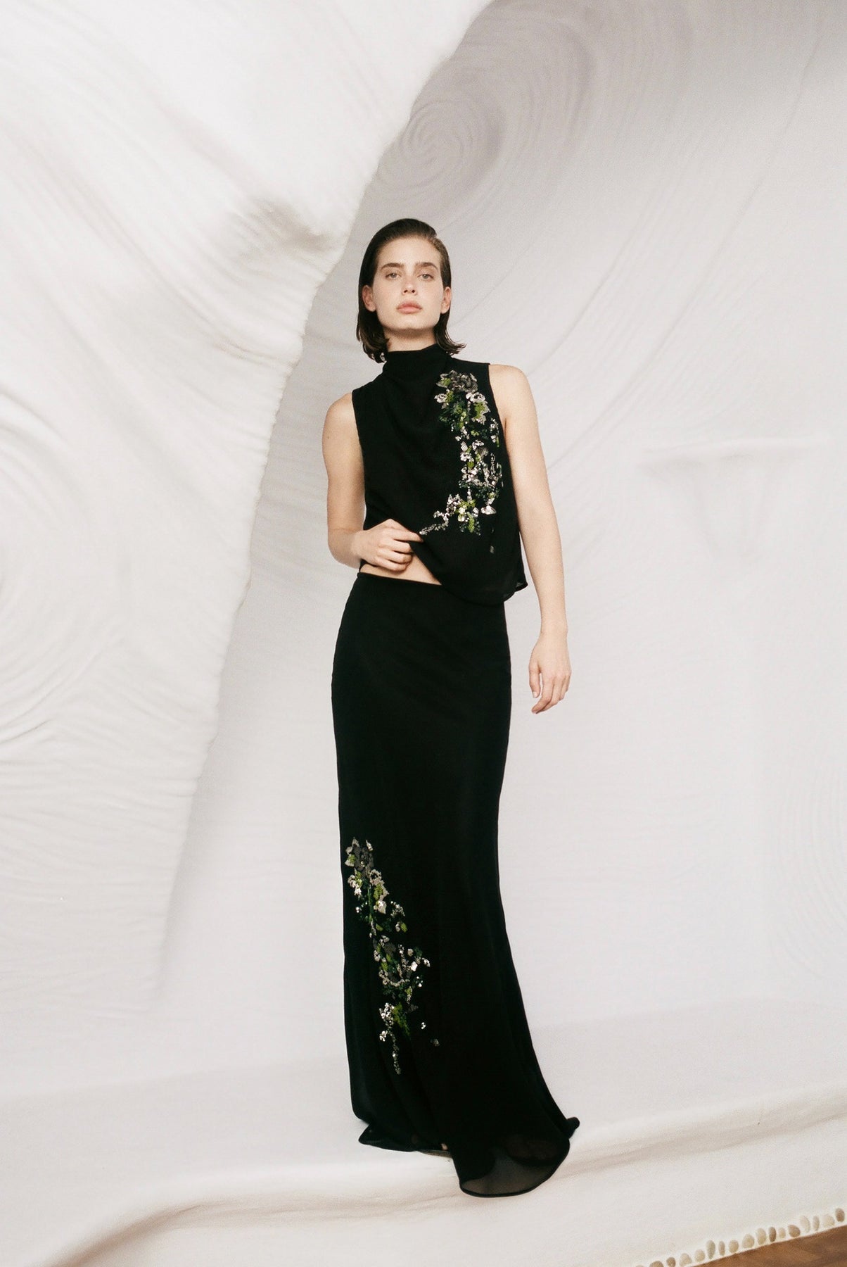 • Evening sequined chiffon maxi skirt by Sabina Musayev.