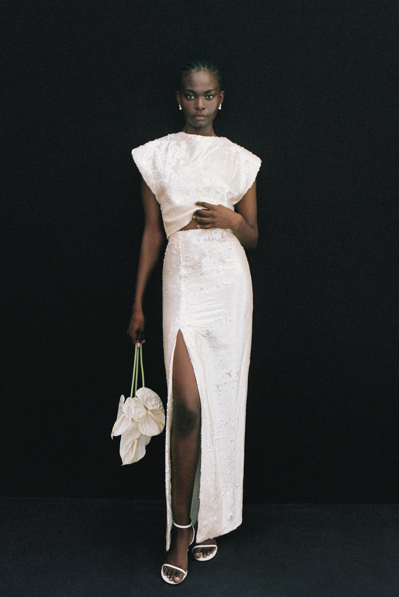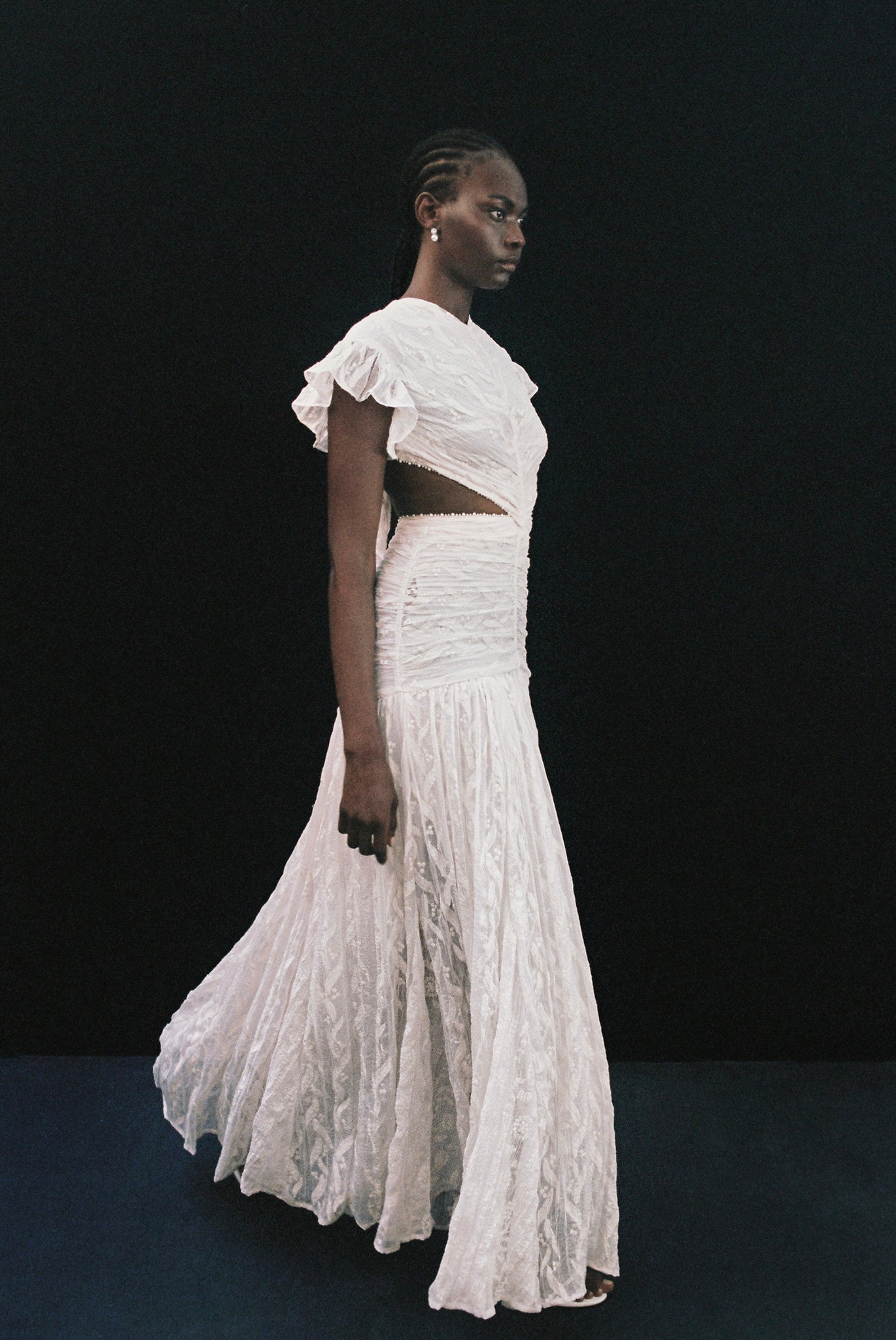 The sunflower is a prominent feature in her artwork, providing significant inspiration for the fabrics that make up this collection. It serves as a recurring motif, beautifully woven throughout the various gowns.