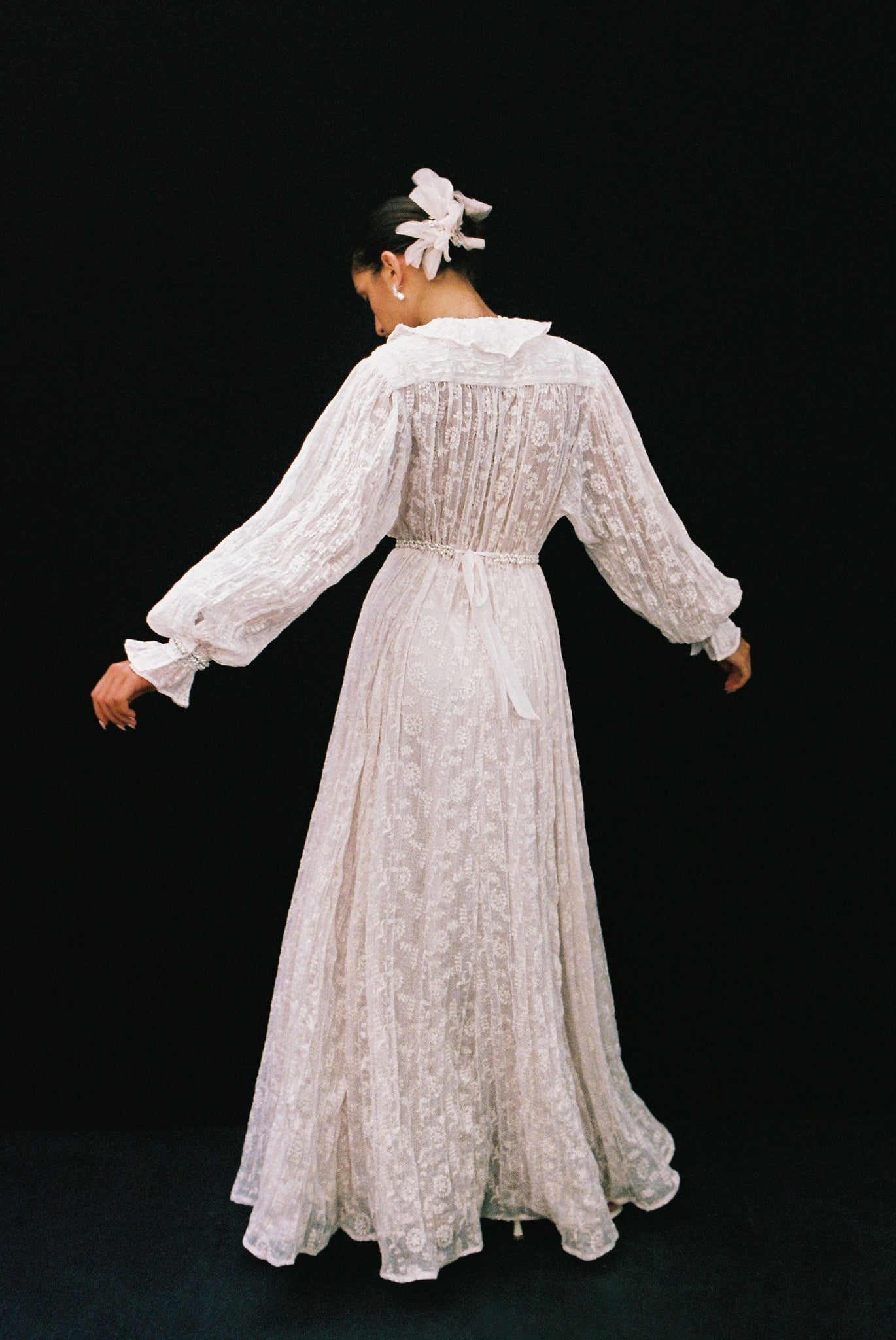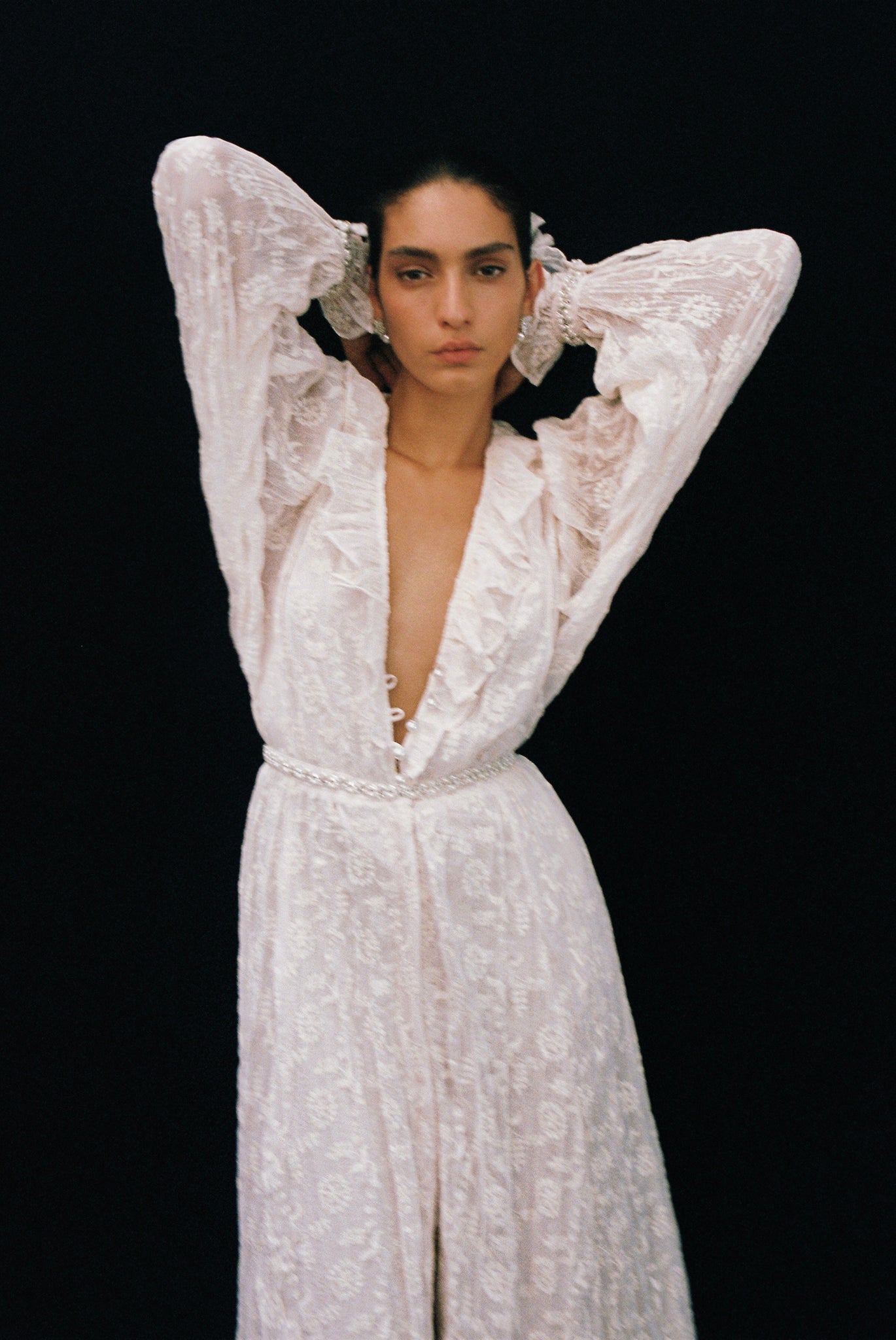 Each design is crafted with meticulous attention to detail, blending old-world charm with innovative elements. Luxurious fabrics such as pleated chiffon with embroidery, statement beaded crochet, delicate floral embossed pleated knit, and matte finish sequins are carefully selected to create unforgettable bridal moments.